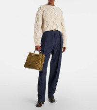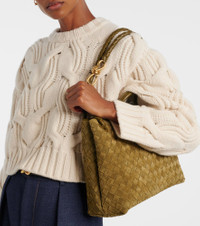 Developed in the 1970s, Bottega Veneta's artful Intrecciato technique guarantees the longevity of its leather goods. The signature weave is used to create the Andiamo Medium tote bag, made in Italy from moss green suede. Product Details - Material: calf leather (suede) - Lining: leather - Made in Italy - Designer color name: Mud M Brass Mud - Item color: green - Hardware color: gold - Top handle - Closure: magnetic fastening - Internal details: internal zipped pocket, internal slot pocket - Includes: dust bag - Item number: P01097449 Size & Fit - Height 25cm-10" - Width 32cm-12.5" - Max. depth 12cm-4.5" - Length of handle 23cm-9" - Length shoulder strap 86cm-34"