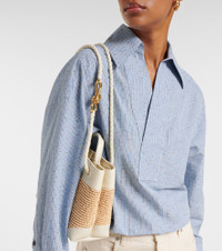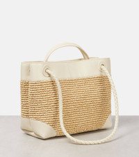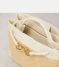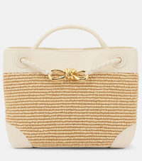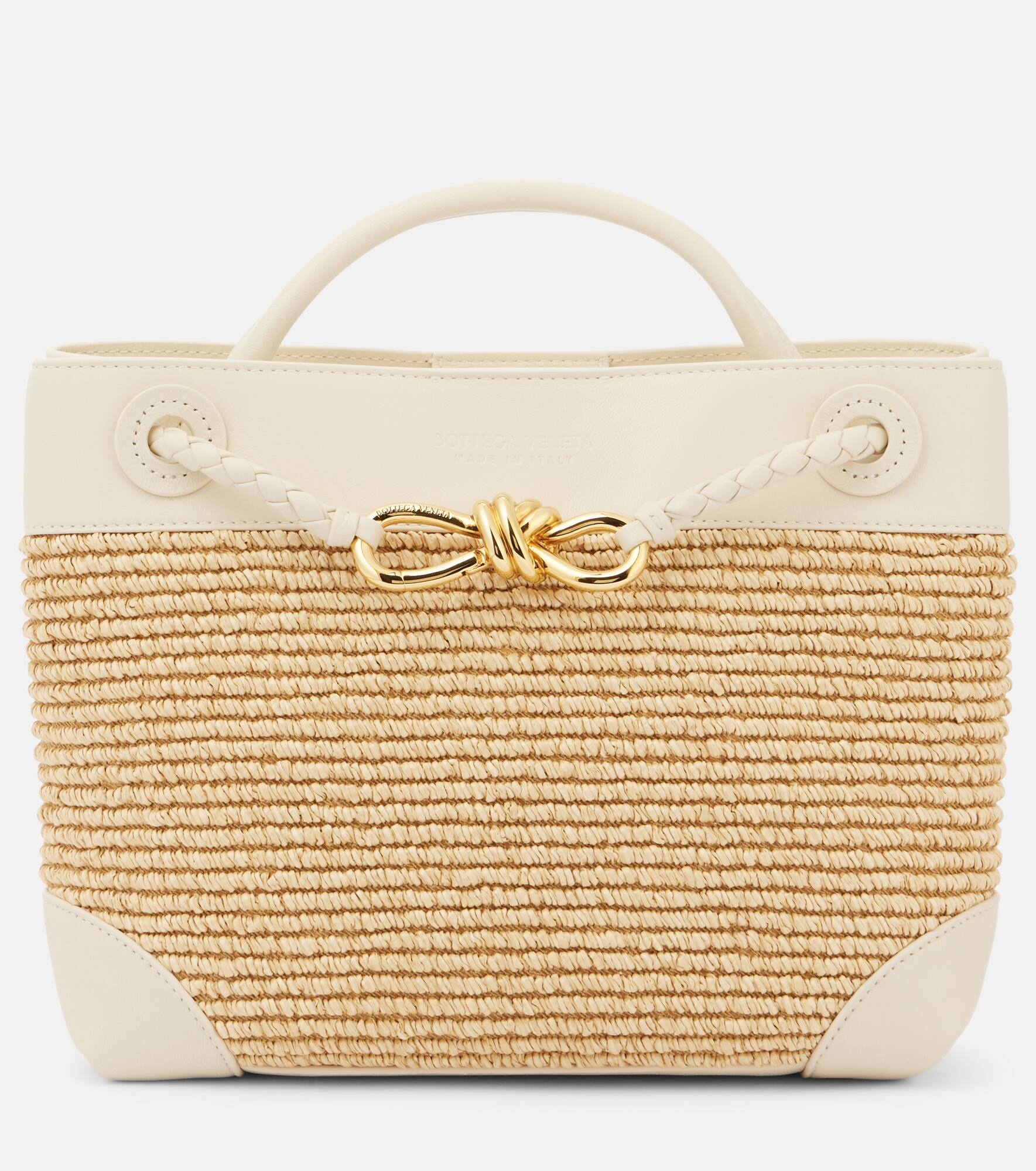 Bottega Veneta brings a warm-weather update to the Andiamo Small tote bag with its raffia-like construction and pale leather trims. The design comes with the brand's characteristic knot detail at the front. Product Details - Material: fabric - Lining: fabric - Made in Italy - Designer color name: Natural/Sea Salt-Mb - Item color: beige - Closure: magnetic fastening - Shoulder strap, Top handle - Hardware color: gold - Internal details: internal slot pocket - Trim: leather - Item number: P01031229 Size & Fit - Height 20cm-8" - Width 25cm-10" - Depth 10,5cm-4" - Length of handle 20cm-8" - Length shoulder strap 95cm-37.5"