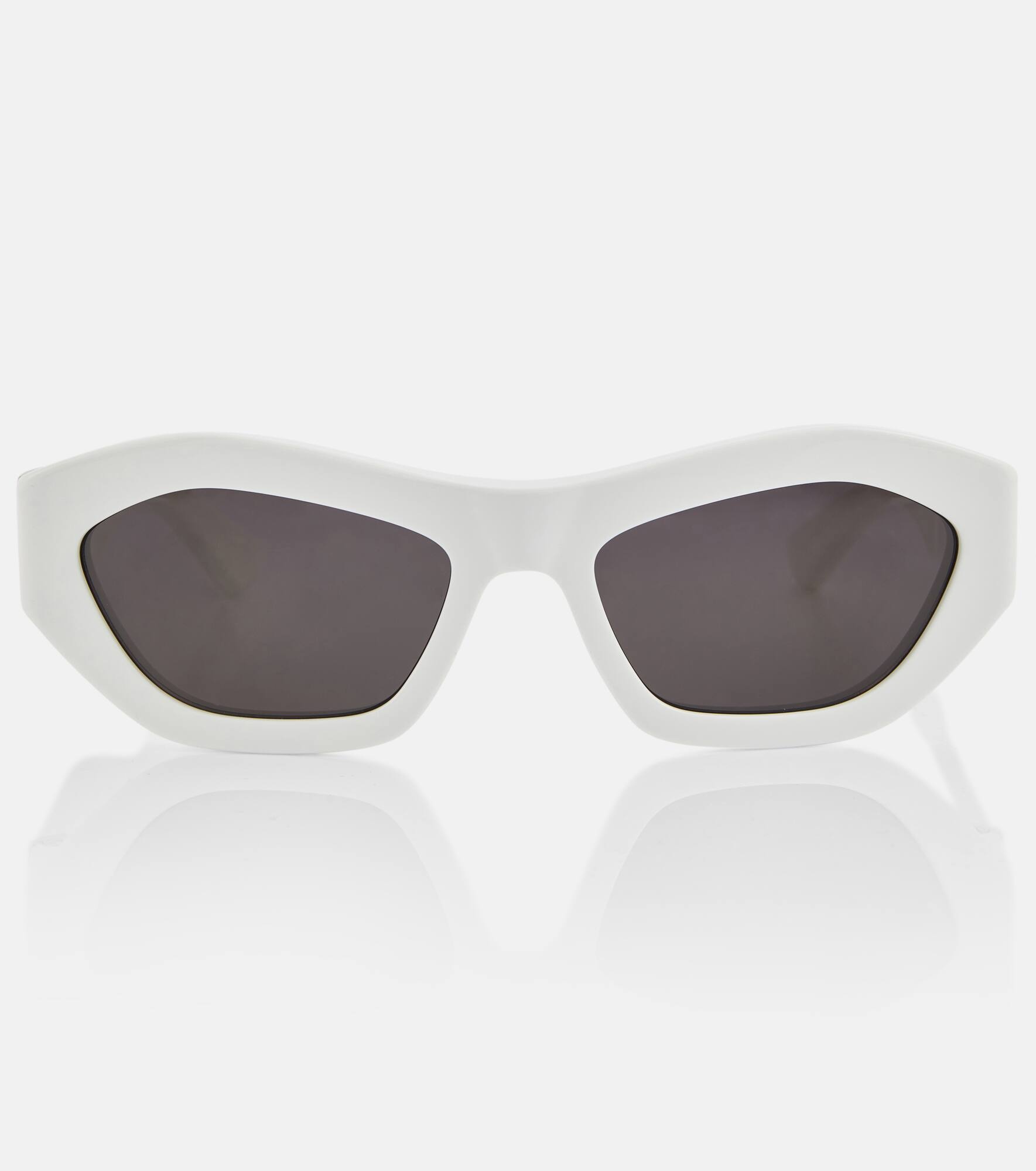Underpinned by architectural design, the Angle sunglasses from Bottega Veneta are a striking addition to your accessories lineup. Made in Japan from acetate, the hexagonal cat-eye style has a thick frame with branded gold-tone triangles on each arm. Product Details - Made in Japan - Frame color: off-white - Lens type: tinted lenses - Frame material: acetate - Lens filter category 3 - The color of the case may vary - Lens color: black - comes with cleaning cloth - comes in a case - Item number: P00811212 Size & Fit - Lens width: 54mm-2.15" - Bridge size: 18mm-0.7" - Earpiece length: 125mm-4.9"