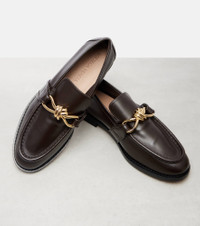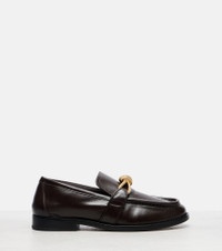 Synonymous with Bottega Veneta since the ‘90s, knotted details have become inextricably linked to the house identity. These signature gold-toned accents are set atop the Astaire loafers, perfectly complementing the pair's smooth leather construction. Product Details - Upper: leather - Lining: leather - Sole: leather insole and sole - Toe shape: almond toe - Made in Italy - Includes: shoe box, dust bags - Designer color name: Fondant - Item color: brown - Contains non-textile parts of animal origin - Item number: P01068636 Size & Fit - Fits small to size - we recommend trying one size larger - Stiff material - European sizes - 2,5cm-1" heel (size EU 38)
