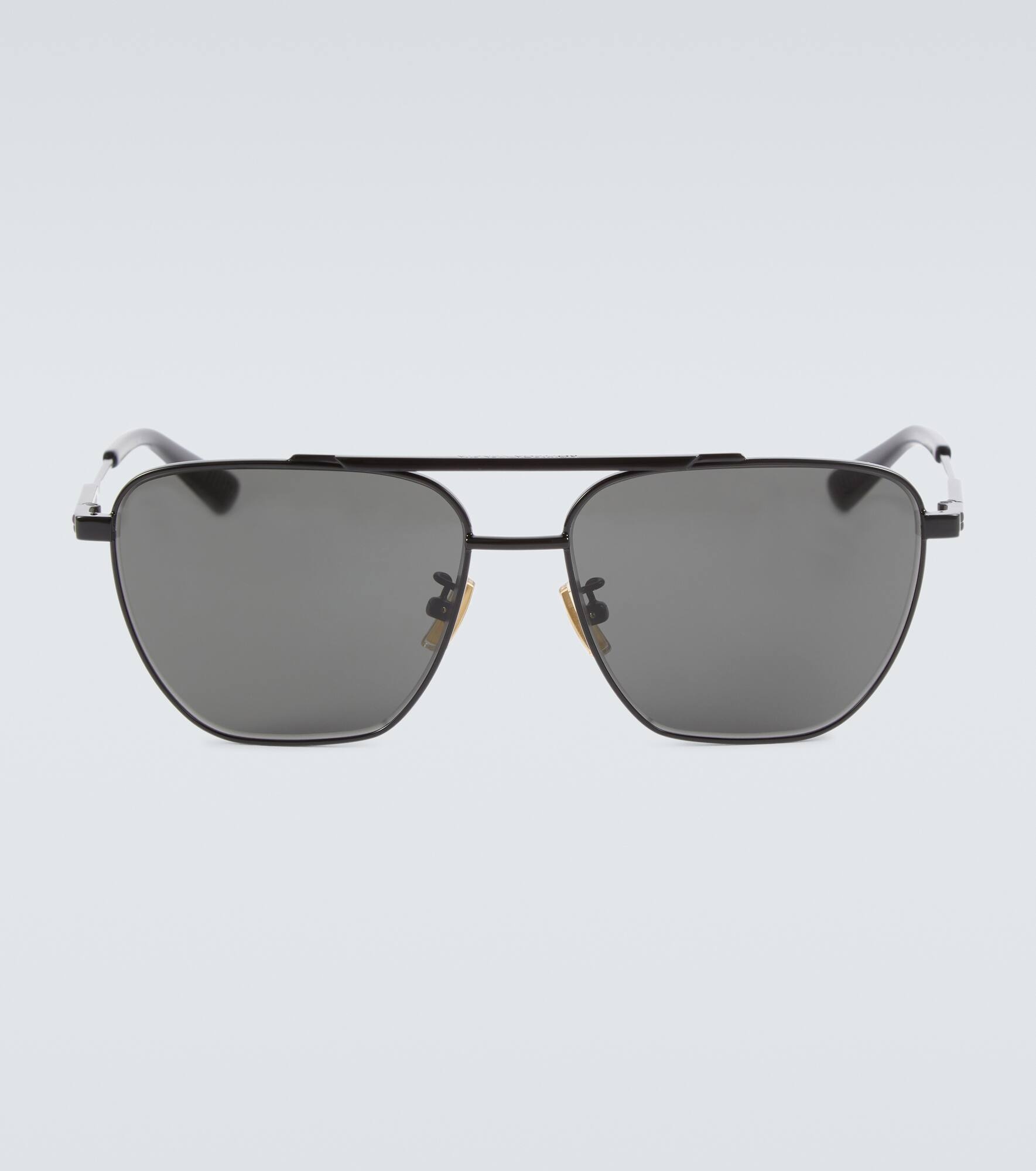 These sunglasses from Bottega Veneta have an aviator-inspired silhouette with a classic double bridge. The versatile style is designed with thin metal frames and fitted with protective tinted lenses Product Details - Frame color: black - Frame material: metal - Lens color: black - comes with cleaning cloth - comes in a logo-embossed case - The color of the case may vary - Lens filter category 3 - Made in Italy - Item number: P00784975 Size & Fit - Lens width: 57mm-2.25" - Bridge size: 15mm-0.6" - Earpiece length: 145mm-5.7"