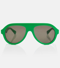 Parakeet green has become one of Bottega Veneta's signatures for a reason: the saturated hue instantly catches the eye. These aviator sunglasses have an exaggerated acetate frame, UV-protective tinted lenses, and gold-tone logo plaques. Product Details - Frame color: green - Frame material: acetate - Lens color: black - comes in a logo-embossed case - comes with cleaning cloth - The color of the case may vary - Lens filter category 3 - Made in Italy - Item number: P00779811 Size & Fit - Lens width: 55mm-2.15" - Bridge size: 18mm-0.7" - Earpiece length: 145mm-5.7"