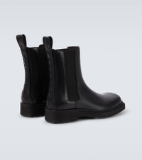 Bottega Veneta has been inspiring individuality with innovative craftsmanship since 1966. The Ben Chelsea boots are made in Italy from black leather and have squared toes and Intrecciato pull tabs. Product Details - Upper: calf leather, fabric - Lining: leather - Sole: leather insole, rubber sole - Toe shape: square toe - Made in Italy - Includes: shoe box, dust bag - Designer color name: Black - Item color: black - Closure: elasticated sides - Item number: P01059744 Size & Fit - True to size - Half sizes please take the next size down - European sizes