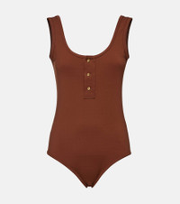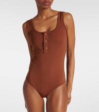 Product Details - Material: 84% polyamide, 16% elastane - Care instructions: hand wash - Made in Italy - Designer color name: Pecan - Closure: partially buttoned front - Item number: P00933743 Size & Fit - True to size - Medium-cut leg - The model seen in the picture is 178cm-5'10", cup size B, and wearing a size XS - Unpadded Top