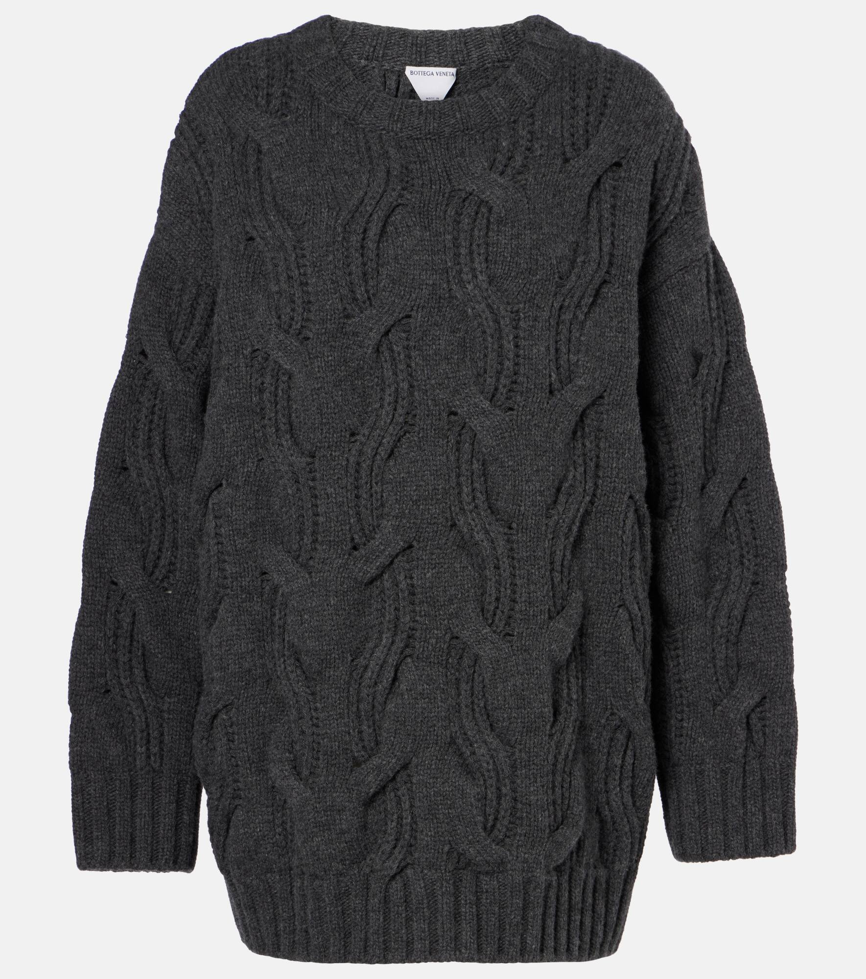 This Bottega Veneta sweater is crafted in Italy from soft wool—an ideal staple for cold-weather dressing. This piece features ribbed cuffs and hem, along with an exaggerated cable-knit pattern that adds texture and dimension. Product Details - Material: 98% wool, 1% elastane, 1% polyamide - Care instructions: dry clean - Made in Italy - Designer color name: Anthracite - Item color: gray - Hem: ribbed - Item number: P01057278 Size & Fit - True to size - Dropped shoulders - Designed for a loose fit - Thick material - Non-stretchy fabric - Falls below the hip - The model seen in the picture is 178cm-5'10" and wearing a size XS