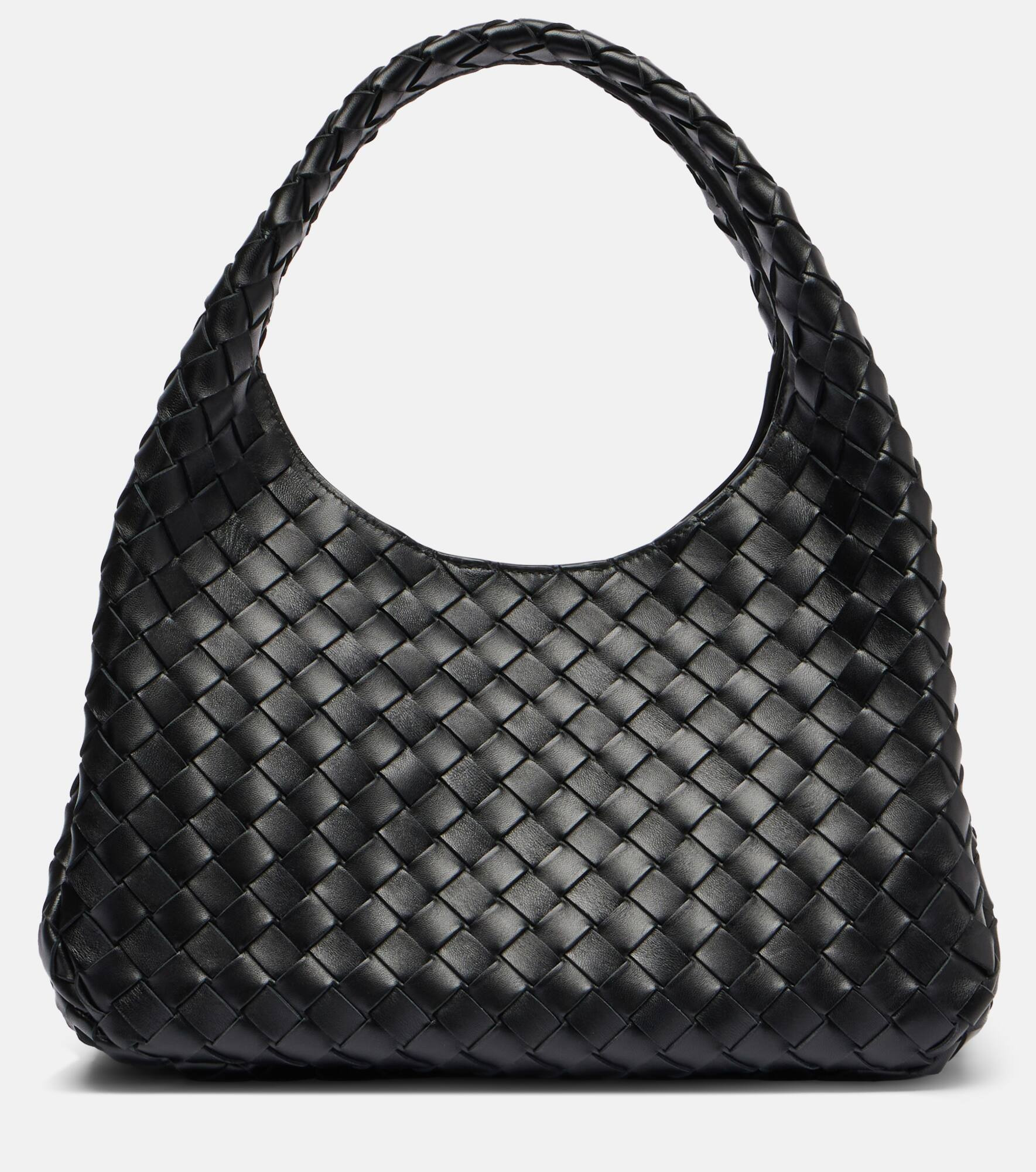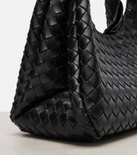 Developed in the 1970s, Bottega Veneta's artful Intrecciato technique guarantees the longevity of its leather goods. The Campana Medium leather tote features top handles and a tie closure with a hidden magnetic fastening. Product Details - Material: leather (nappa) - Lining: leather - Made in Italy - Designer color name: Black-M Brass - Item color: black - Closure: magnetic fastening - Top handles - Item number: P01097464 Size & Fit - Height 20cm-8" - Width 35cm-14" - Depth 16cm-6.5" - Length of handles 33cm-13"