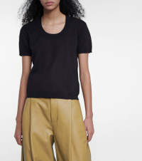 This black sweater from Bottega Veneta will make the ultimate base layer for both your on- and off-duty ensembles. Made from a luxe blended knit that includes cashmere and cotton yarns, it has a U-shaped neckline and a loose fit for comfortable all-day wear. Style with denim and two-piece suiting alike. - material: 47% cashmere, 45% cotton, 6% polyamide, 2% elastane - trim: 95% cashmere, 4% polyamide, 1% elastane - care instructions: dry clean - Made in Italy - Designer colour name: Black