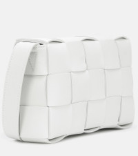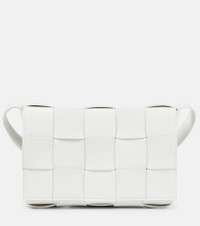 Swing day-to-day essentials in style with the Cassette shoulder bag from Bottega Veneta by your side. The white leather design works an oversized iteration of the label's signature intrecciato weave, and its softly structured silhouette hangs from an adjustable shoulder strap. Product Details - Internal details: internal zipped pocket, leather lining - Made in Italy - Comes with dust bag - Closure: magnetic fastening - Color of fastening: silver - Adjustable shoulder strap - Material: lamb leather - Item number: P00502410 Size & Fit - Height 15cm-6" - Width 23cm-9" - Depth 5,5cm-2" - Min. length shoulder strap 96cm-38" - Max. length shoulder strap 115cm-45.5"