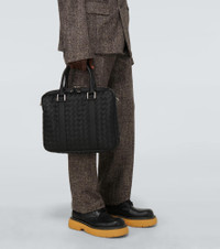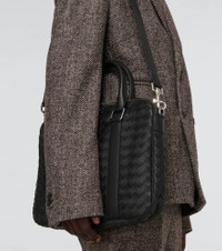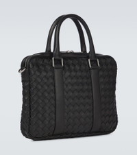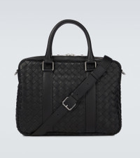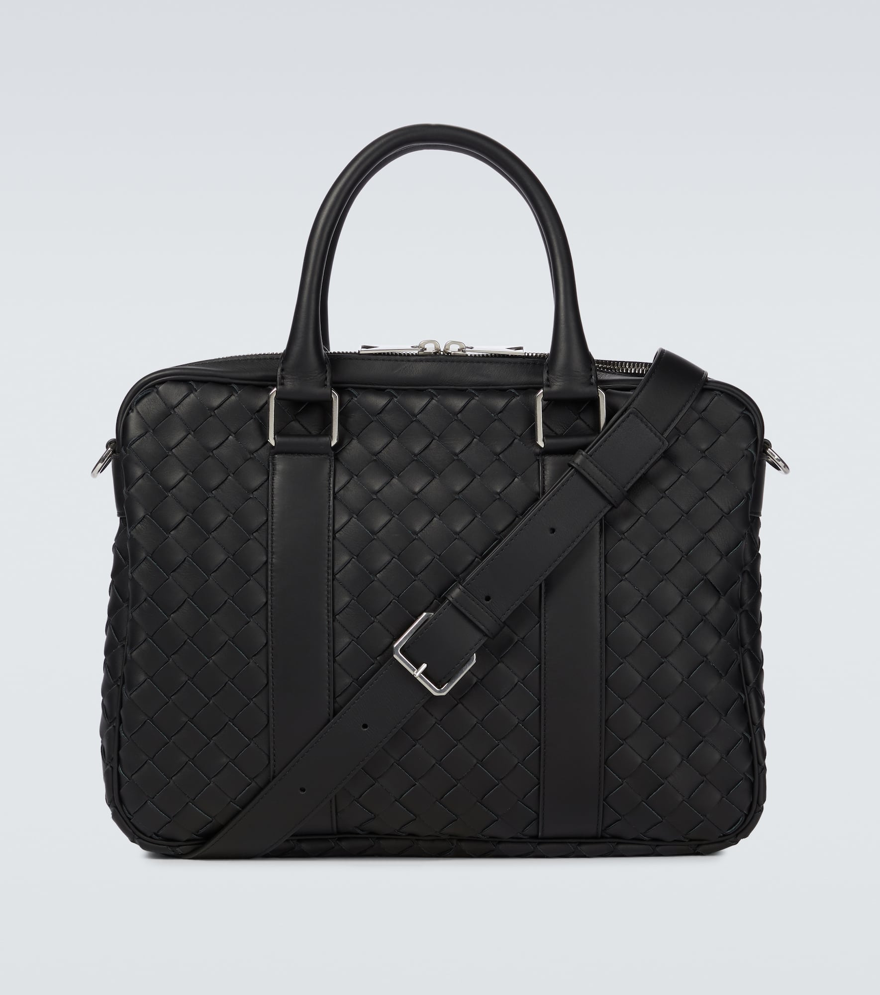 Crafted from leather, the Classic Medium briefcase from Bottega Veneta is accented with the label's signature Intrecciato motif and comes with a removable shoulder strap and two top handles. Product Details - Made in Italy - Comes with dust bag - Color of fastening: silver - Internal details: leather lining, internal zipped pouch - Closure: zipped top - Detachable, adjustable shoulder strap, Top handles - Material: calf leather - Item number: P00583526 Size & Fit - Height 26,5cm-10.5" - Width 35,5cm-14" - Depth 5cm-2" - Length of handles 38cm-15" - Min. length shoulder strap 100cm-39.5" - Max. length shoulder strap 120cm-47"
