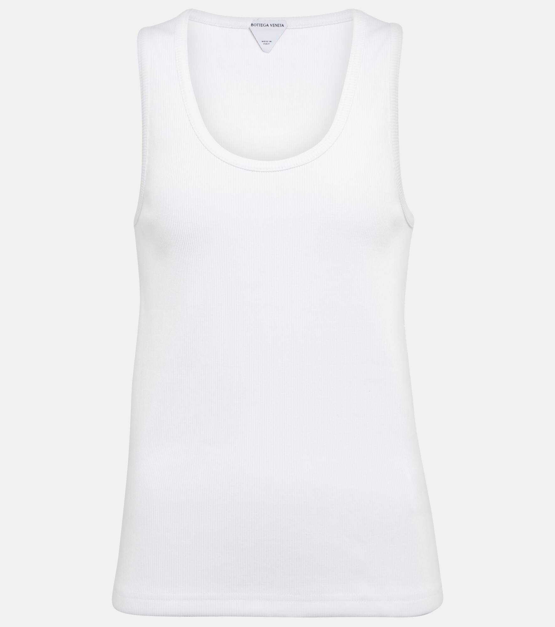 Shown in the opening look of Bottega Veneta's Fall 2022 runway, the humble white tank top is having a fashion moment. This iteration is made from stretchy cotton-blend jersey with a scoop neck. Product Details - Made in Italy - Care instructions: machine wash at 30 degrees - Material: 95% cotton, 5% elastane - Designer color name: Chalk - Item number: P00735428 Size & Fit - True to size - Straight fit - Mid-weight material - Falls to the hip - The model seen in the picture is 178cm-5'10" and wearing a size XS