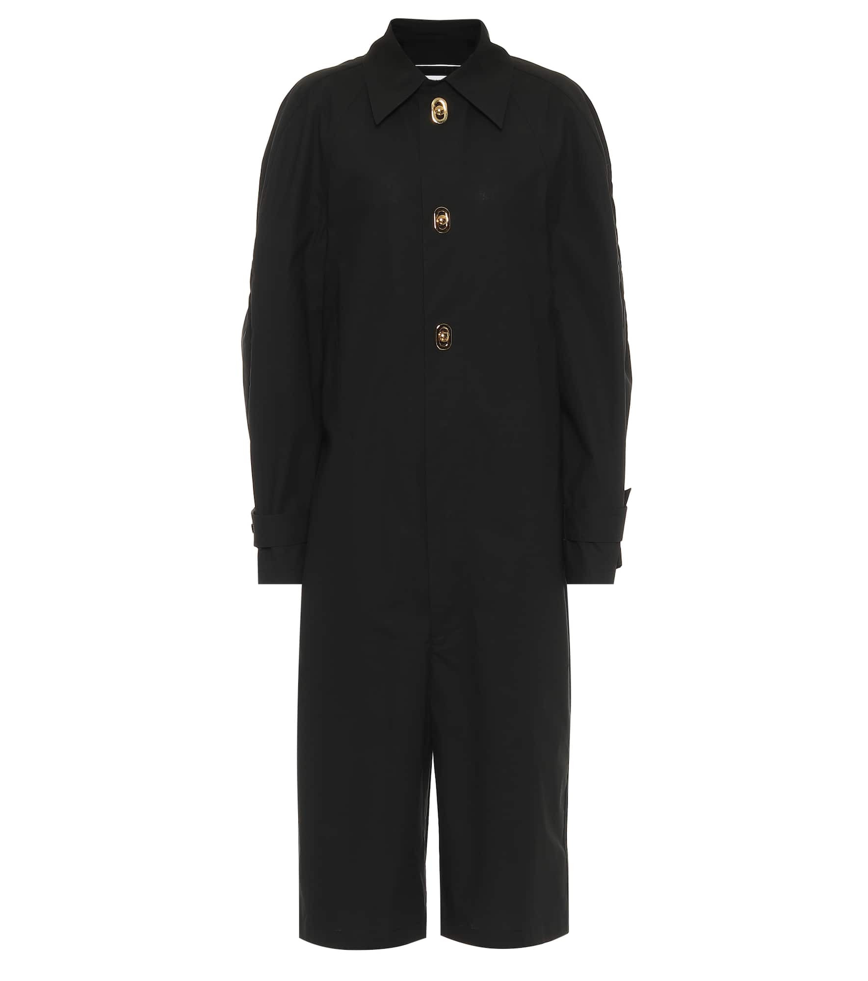 Daniel Lee wants his pieces for Bottega Veneta to work as hard as the woman who wears them – a vision achieved with this jumpsuit. Made in Italy from black cotton, it fastens with oval frame buttons featured throughout the label's latest collection. Style yours with square-toed mules to capture the mood of the moment. - material: 100% cotton - material II: 100% polyurethane - care instructions: hand wash - side slit pockets - buttoned front - Made in Italy - Designer colour name: Black - snap-buttoned cuff tab