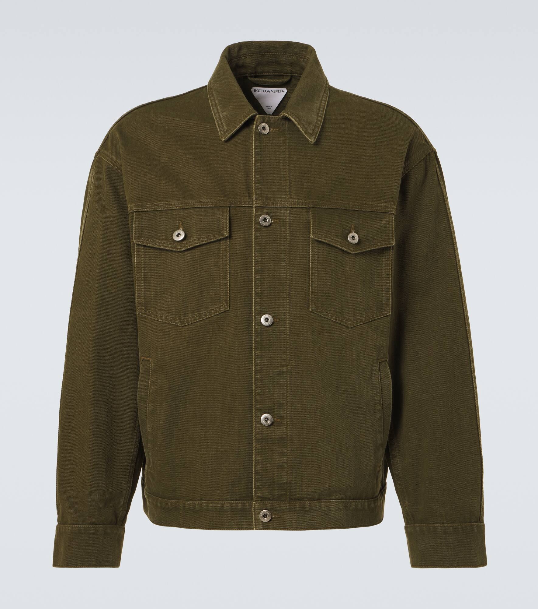 Product Details - Material: 100% cotton - Care instructions: machine wash at 30 degrees - Made in Italy - Designer color name: Caper Stone Washed - Item color: green - Pocket lining: 65% polyester, 35% cotton - Details: 100% leather - Closure: button-down - Pockets: breast pockets, side slit pockets - Item number: P01031678 Size & Fit - True to size - Dropped shoulders - Straight fit - Non-stretchy fabric - Falls to the hip - The model in the picture is 185cm-6'1" and wearing a size IT 50