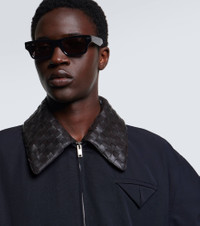 Bottega Veneta has inspired individuality and new modes of craftsmanship since 1966. The Dizzy sunglasses have black rectangular frames, dark grey lenses, and silver-toned accents. Product Details - Frame material: acetate - Frame color: black - Lens filter category 3 - Lens color: grey - Made in Japan - Includes: logo-embossed case, cleaning cloth - The color of the case may vary - Item number: P01054384 Size & Fit - Lens width: 50mm-1.95" - Bridge size: 20mm-0.8" - Earpiece length: 145mm-5.7"
