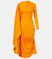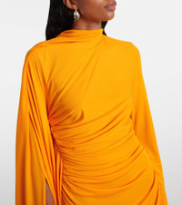 This matte jersey maxi dress from Bottega Veneta brings a glamorous silhouette to life with elegant draping. Long sleeves and a side slit add movement and modern appeal, perfect for special summer occasions. Product Details - Material: 100% viscose - Care instructions: dry clean - Made in Italy - Designer color name: Mandarin - Item color: orange - Closure: zipper fastening - Item number: P01031278 Size & Fit - True to size - Fitted - Stretchy fabric - The model seen in the picture is 178cm-5'10" and wearing a size IT 40