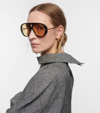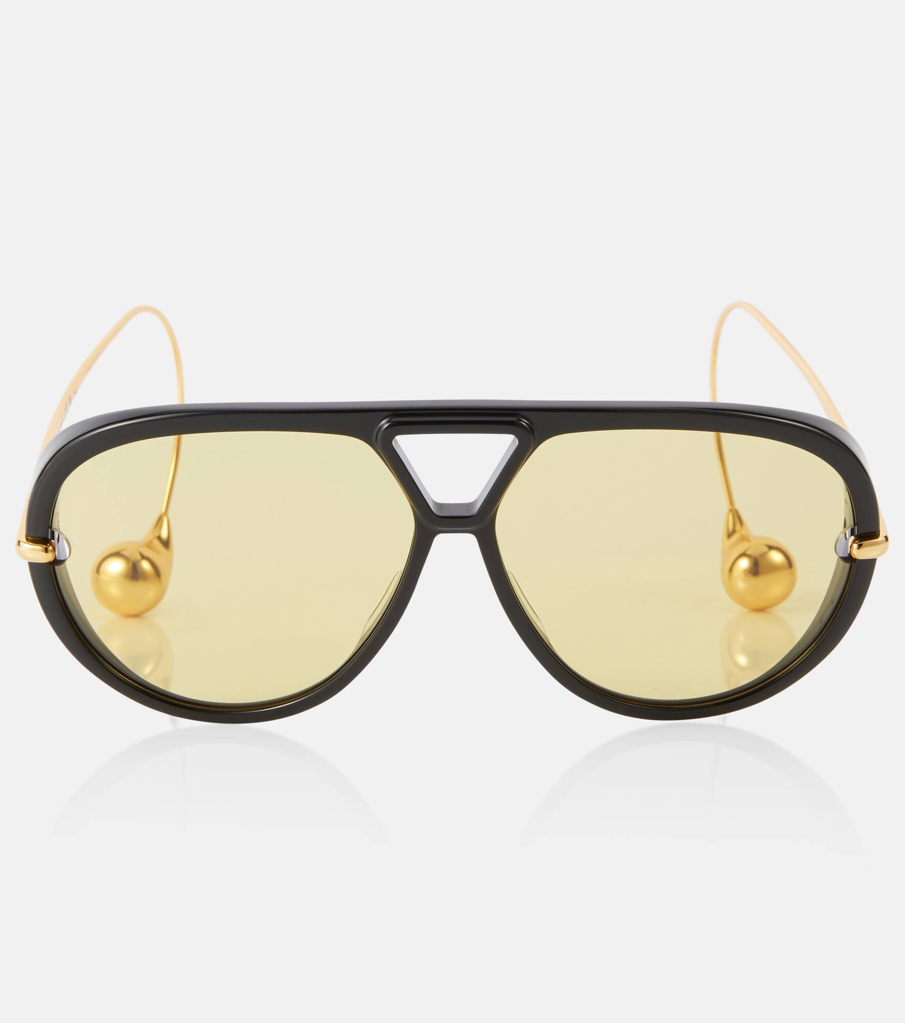 Made in Japan from durable acetate, these aviator sunglasses from Bottega Veneta feature gleaming metal temples accented with the house's drop motif. Fitted with tinted yellow lenses, they'll add a modern finish to any look. Product Details - Frame material: acetate - Frame color: gold, black - Lens filter category 1 - Lens color: yellow - Made in Japan - Includes: hard case - comes with cleaning cloth - The color of the case may vary - Designer color name: Black-Gold-Yellow - Item number: P00870177 Size & Fit - Lens width: 63mm-2.5" - Bridge size: 12mm-0.45" - Earpiece length: 180mm-7.1"
