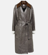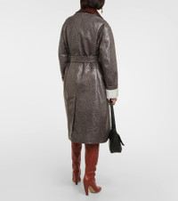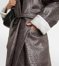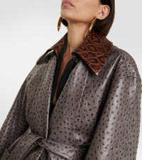 Ostrich-Effect Leather Belted Coat