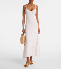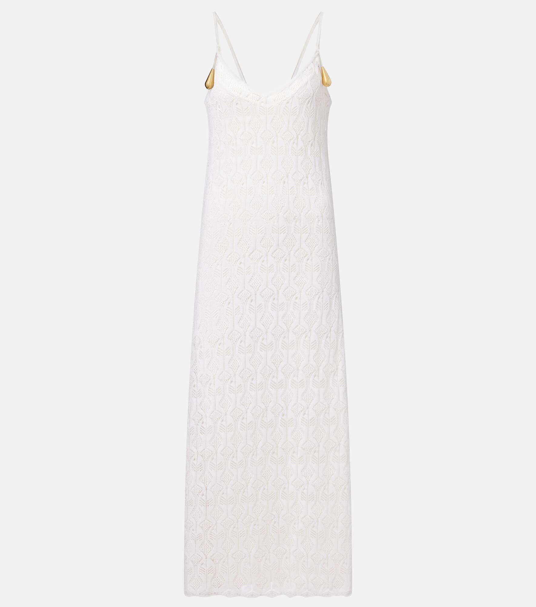 Embellished open-knit cotton and silk-blend midi dress Off-white