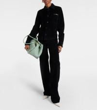 Leather-trimmed cotton-corduroy straight-leg pants Midnight blue