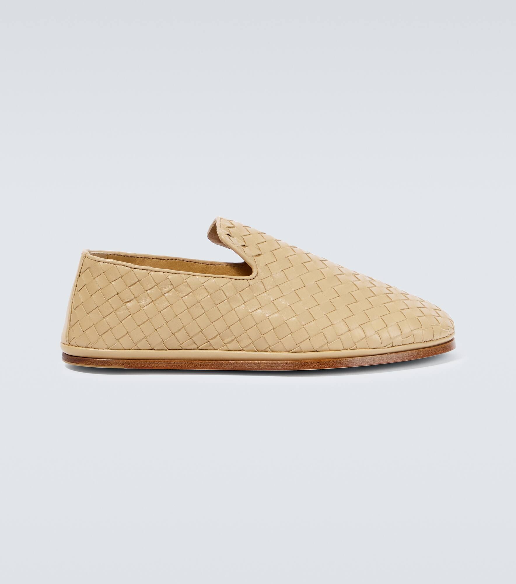 Bottega Veneta's artisanal intrecciato weaving technique was developed in the '60s as a way to make leather goods more durable. Today, the brand brings the signature practice to the design of these beige leather loafers. Product Details - Toe shape: round toe - Upper: lamb leather - Sole: leather insole and sole - Comes with dust bags, Comes with a box - Designer color name: Cane Sugar - Made in Italy - Item number: P00745780 Size & Fit - Fits large to size - we recommend trying one size smaller - Slightly wide - European sizes