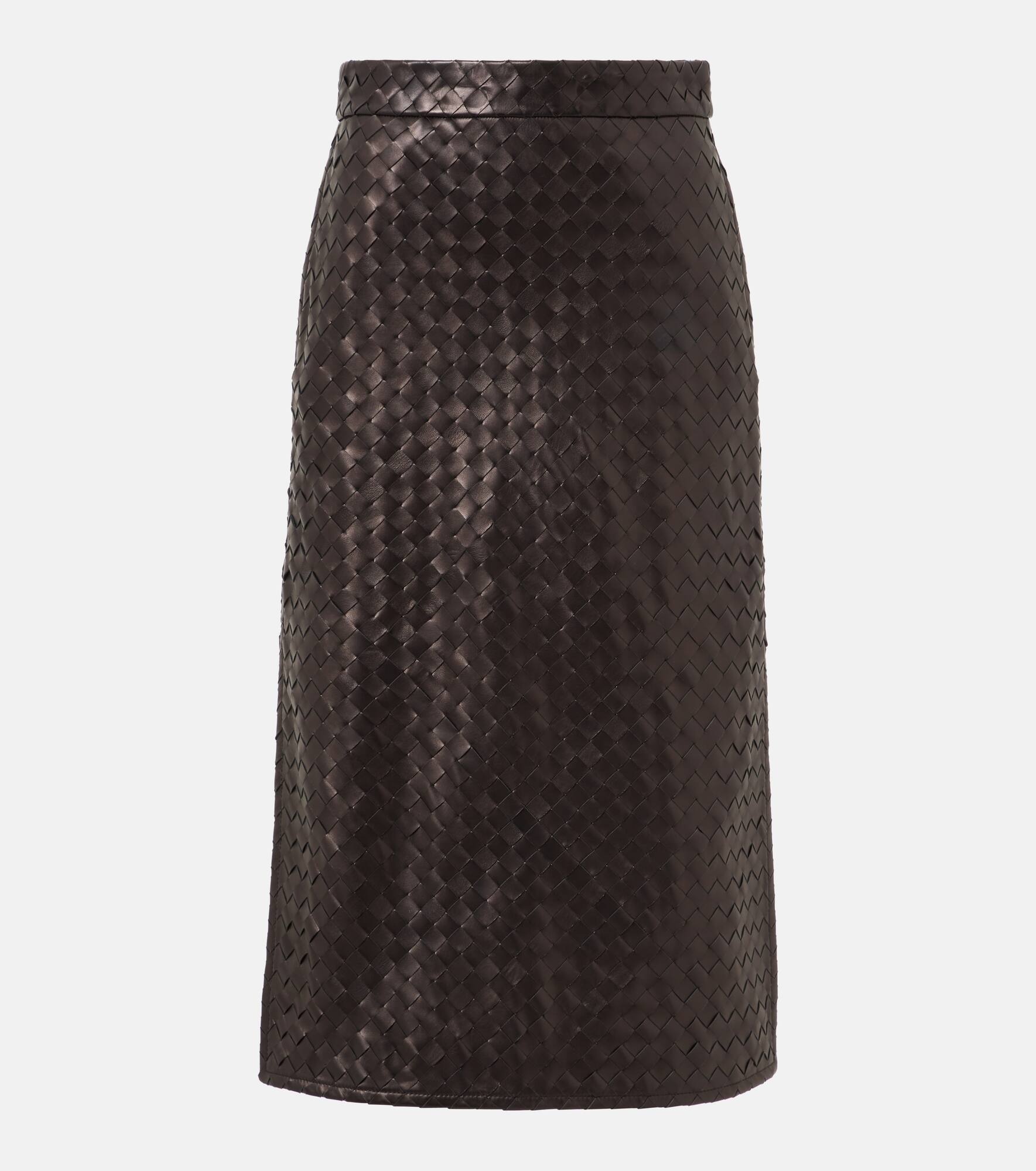 Intrecciato leather midi skirt