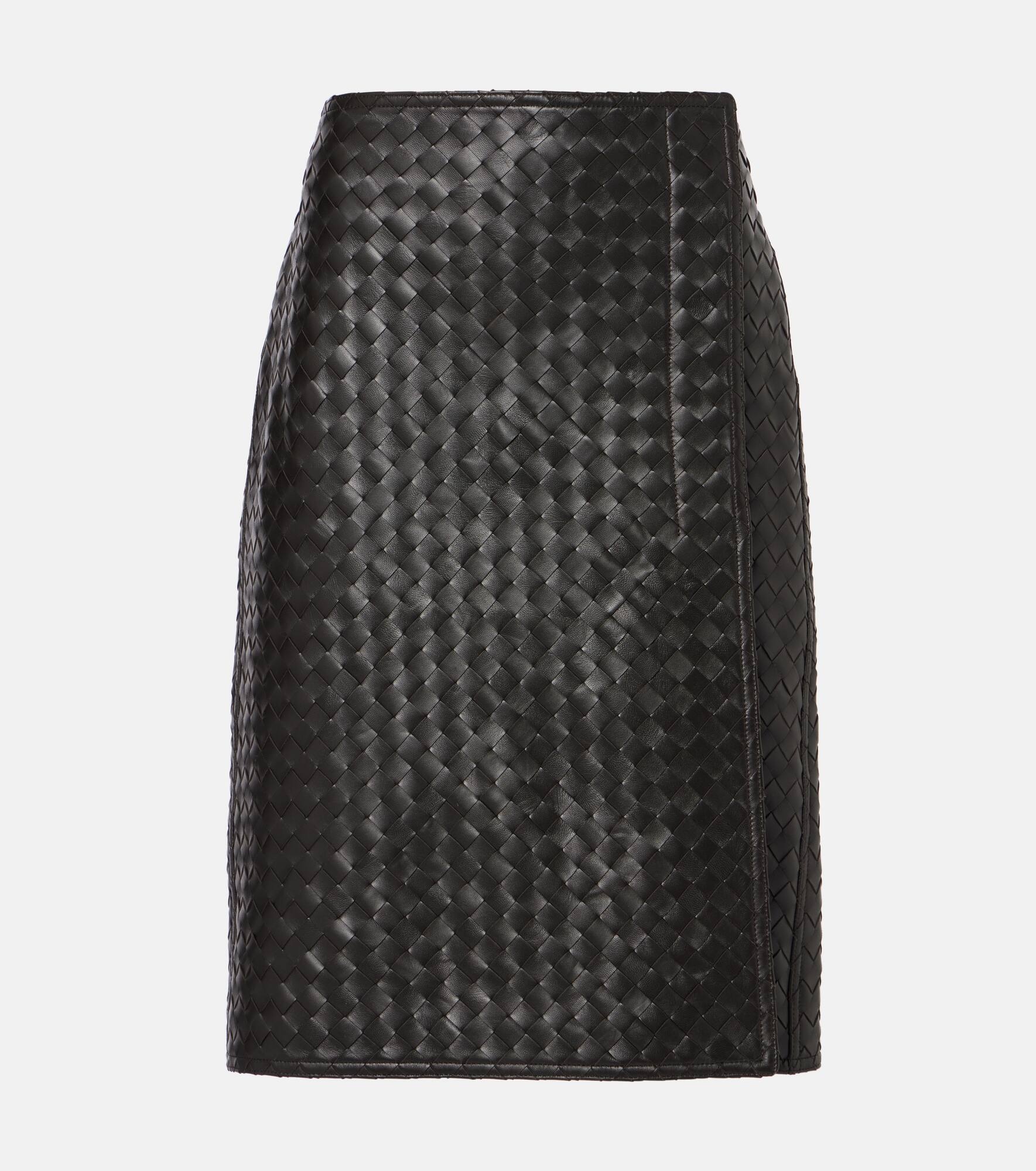 Intrecciato leather midi skirt