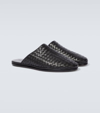 These slippers from Bottega Veneta are crafted in Italy from leather using the brand’s signature intrecciato technique. Product Details - Lining: leather - Toe shape: round toe - Sole: leather insole and sole - Upper: leather - Comes with dust bags - Designer color name: Black - Comes with a box - Made in Italy - Item number: P00745766 Size & Fit - True to size - European sizes