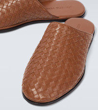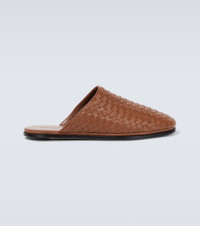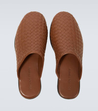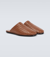 Developed in the 1970s, Bottega Veneta's artful intrecciato technique guarantees the longevity of its leather goods. These leather slippers are crafted in Italy using the brand’s signature technique and rest atop comfortable cushioned soles. Product Details - Lining: leather - Sole: leather insole and sole - Comes with a box - Upper: leather - Made in Italy - Designer color name: Rust - Comes with dust bag - Toe shape: round toe - Item number: P00830093 Size & Fit - True to size - European sizes