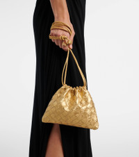 Developed in the 1970s, Bottega Veneta's artful Intrecciato technique guarantees the longevity of its leather goods. This Small pouch is made from gold-toned metallic leather using the innovative weave and features a drawstring top. Product Details - Material: leather - Lining: fabric - Made in Italy - Designer color name: Gold/Gold - Item color: gold - Closure: drawstring top - Shoulder strap - Item number: P01118353 Size & Fit - Height 16cm-6.5" - Width 20cm-8" - Depth 3cm-1" - Length shoulder strap 95cm-37.5"