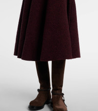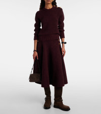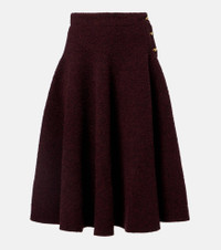 Synonymous with Bottega Veneta since the ‘90s, knotted details have become inextricably linked to the house identity. The motif details the waist of this cotton and wool-blend midi skirt rendered in burgundy. Product Details - Material: 49% cotton, 41% wool, 9% polyamide, 1% elastane - Care instructions: dry clean - Made in Italy - Designer color name: Oxblood Melange - Item color: burgundy - Hardware color: gold - Closure: button fastening, hook fastening - Item number: P01119019 Size & Fit - True to size - Slightly stretchy fabric - High-waisted - Height of model is 177cm-69.5" and wears a size XS