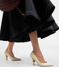 Product Details - Upper: leather - Lining: leather - Sole: leather insole, leather and rubber sole - Toe shape: square toe - Made in Italy - Includes: shoe box, dust bags, extra heel tips - Designer color name: Sea Salt - Trim: brass - Item number: P00885182 Size & Fit - Fits slightly large to size - we recommend trying a half size smaller - European sizes - 10cm-4" heel (size EU 38)
