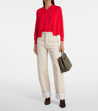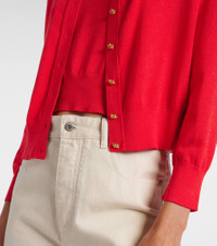 Crafted in Italy from lightweight cotton blend, this Bottega Veneta twinset is the perfect balance of warmth and sophistication. This piece features signature gold-toned Knot buttons— a motif linked to the brand's identity since the '90s. Product Details - Material: 59% cotton, 41% viscose - Care instructions: dry clean - Made in Italy - Designer color name: Cherry Tomato - Item color: red - Insert: 100% brass - Material II: 53% cotton, 37% viscose, 8% polyamide, 2% elastane - Material III: 56% cotton, 40% viscose, 3% polyamide, 1% elastane - Closure: buttoned front - Collar: V-neck - Two-piece set - Item number: P01057294 Size & Fit - True to size - Dropped shoulders - Straight fit - Stretchy fabric - Falls to the hip - The model seen in the picture is 178cm-5'10" and wearing a size XS