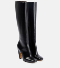 These knee-high boots from Bottega Veneta are designed to last, season after season. Carefully crafted in Italy from black leather, they have a timeless silhouette, with a square toe and a modest, curved heel. Product Details - Sole: leather insole, rubber sole - Upper: cow leather - Closure: zipped side - Toe shape: square toe - Designer color name: Black - Comes with a box - Made in Italy - Comes with dust bags - Item number: P00710107 Size & Fit - True to size - European sizes - 11cm-4.5" heel (size EU 38) - 41cm-16" shaft height (size EU 38) - 35cm-14" shaft width (size EU 38) - shaft width measured on largest part of boot