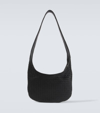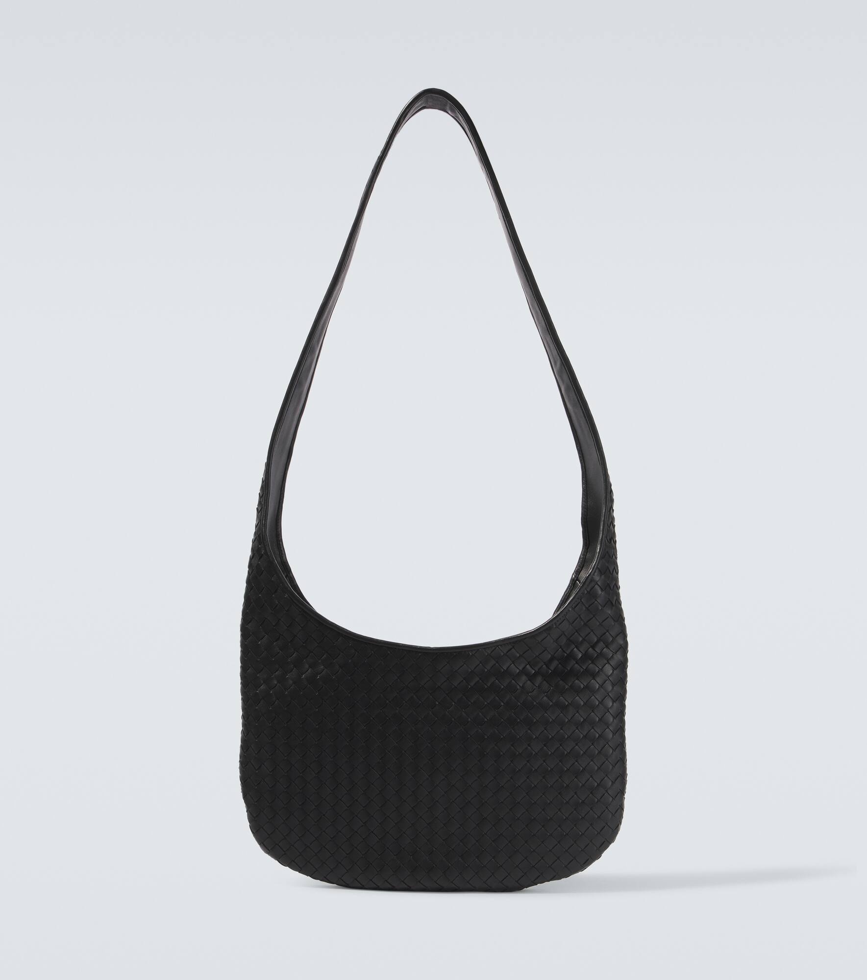Developed in the 1970s, Bottega Veneta's artful Intrecciato technique guarantees the longevity of its leather goods. Crafted from leather, this crossbody bag features this technique as well as the brand's signature triangle motif. Product Details - Material: leather - Lining: leather - Made in Italy - Designer color name: Black-Silver - Item color: black - Internal details: internal zipped pocket, internal slot pocket - Closure: zipped top - Top handle - Hardware color: silver - Item number: P01031723 Size & Fit - Height 24cm-9.5" - Width 37cm-14.5" - Depth 5cm-2" - Length shoulder strap 101cm-40"