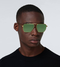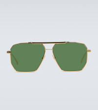 In a geometric aviator-inspired shape, these gold-tone metal sunglasses from Bottega Veneta have a double nose bridge, green tinted lenses and come with a leather case. Product Details - Frame color: gold - Frame material: metal - Lens color: dark green - Lens filter category 2 - Made in Italy - Item number: P00492269 Size & Fit - Lens width: 60mm-2.35" - Bridge size: 13mm-0.5" - Earpiece length: 145mm-5.7"