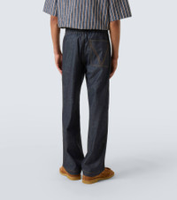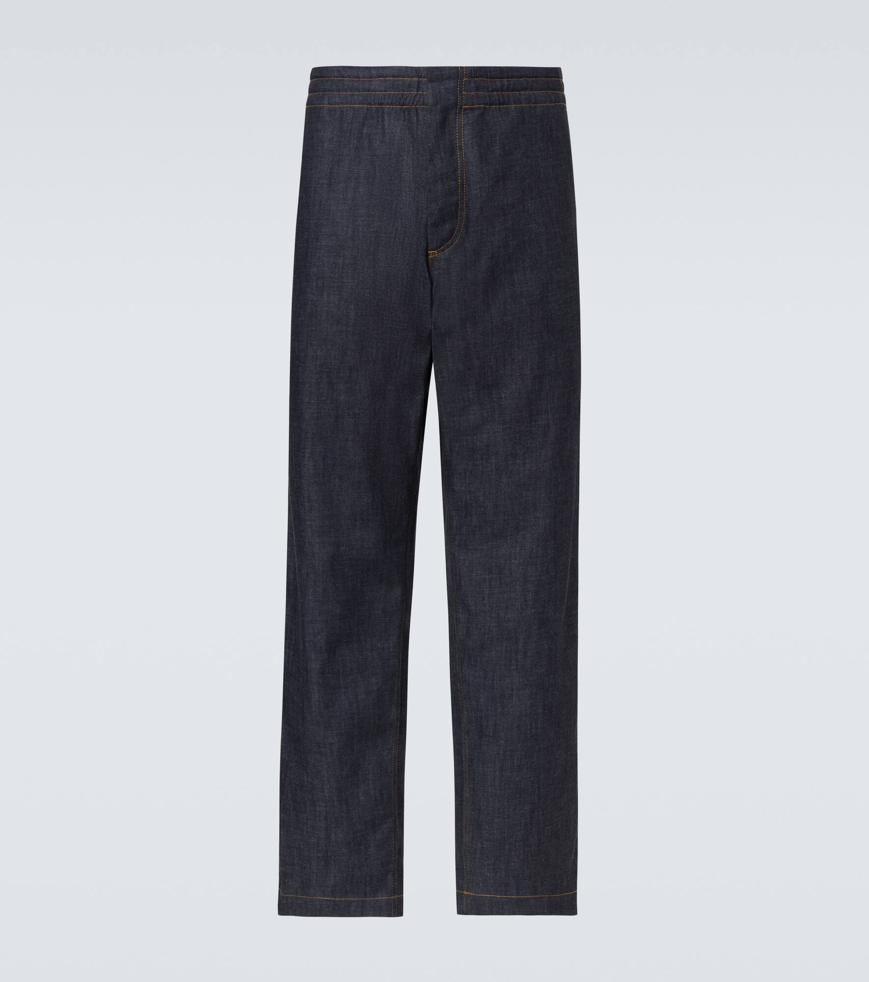 This pair of jeans from Bottega Veneta features a relaxed fit and a mid-rise, straight silhouette. An elasticated waistband lends this style endless comfort while its indigo denim construction ensures a timeless appeal. Product Details - Material: 100% cotton - Care instructions: machine wash at 30 degrees - Made in Italy - Designer color name: Indigo - Item color: blue - Lining: 65% polyester, 35% cotton - Pockets: side slit pockets, back pocket - Closure: zip and hook fastening - Item number: P01059699 Size & Fit - True to size - Elasticated waist - Adjustable at the waist - Non-stretchy fabric - Straight leg - Mid-rise - Height of model is 188cm-74" and wears a size 50