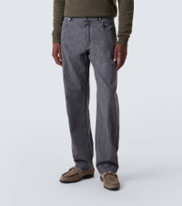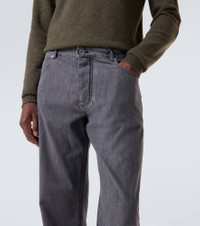 Designed with a washed finish, these Bottega Veneta straight jeans complete the look with a vintage touch. The silhouette showcases a leather patch at the back, crafted with the signature Intrecciato technique. Product Details - Material: 100% cotton - Care instructions: machine wash at 30 degrees - Made in Italy - Designer color name: Washed Black - Item color: gray - Pocket lining: 65% polyester, 35% cotton - Details: 100% cow leather - Contains non-textile parts of animal origin - Hardware color: silver - Closure: concealed button placket - Belt loops - Pockets: five pockets - Item number: P01059701 Size & Fit - True to size - Non-stretchy fabric - Straight leg - Mid-rise - Height of model is 189cm-74.5" and wears a size 50