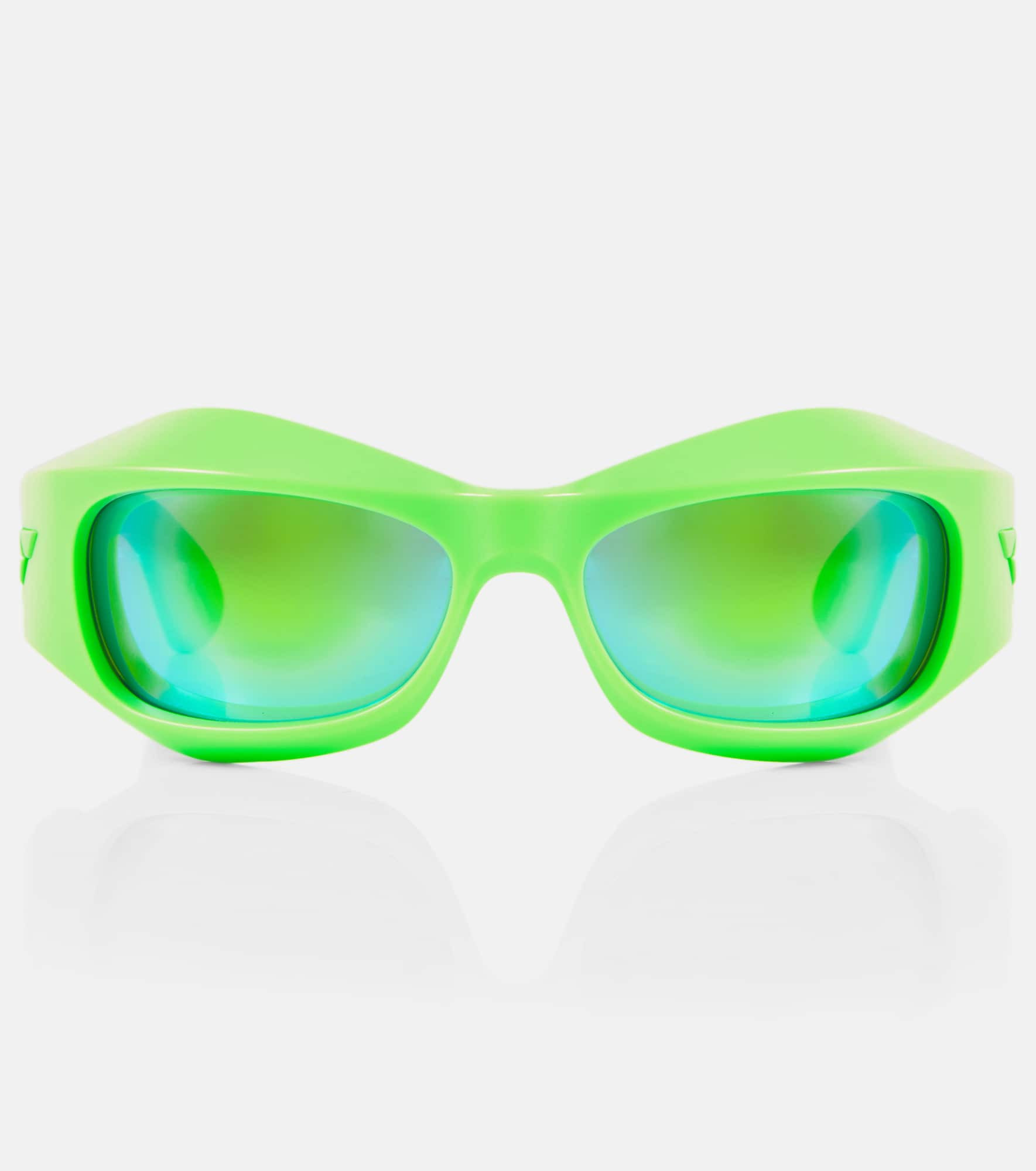 These sporty sunglasses from Bottega Veneta have mirrored lenses and an ultra-modern silhouette. Made from acetate, the oval-shaped frames have wide temples with tonal, dimensional detailing. Product Details - Frame color: green - Frame material: plastic - Lens color: multicoloured - comes in a hard case - comes with cleaning cloth - Lens filter category 3 - Made in Japan - Item number: P00750079 Size & Fit - Lens width: 63mm-2.5" - Bridge size: 17mm-0.65" - Earpiece length: 130mm-5.1"