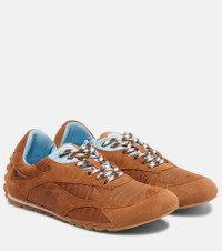 Bottega Veneta has inspired individuality and new modes of craftsmanship since 1966. Made from suede with mesh inserts, the Orbit Flash sneakers are a retro-inspired pair with chevron-patterned soles for traction. Product Details - Upper: calf leather (suede), fabric - Lining: leather - Sole: leather insole, rubber sole - Toe shape: almond toe - Made in Italy - Includes: shoe box, dust bag, extra laces - Designer color name: New Amber/Iceberg - Item color: brown, blue - Closure: lace-up - Item number: P01126431 Size & Fit - True to size - Half sizes please take the next size up - European sizes