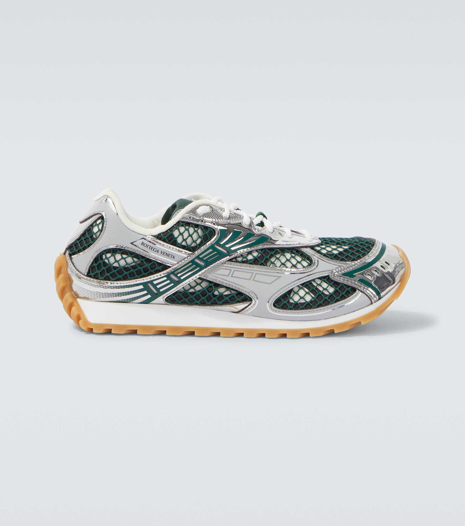 Since 1966, Bottega Veneta has redefined craftsmanship, blending innovation with timeless design. The Orbit sneakers are a retro-inspired pair made from mesh and boast thick soles for enhanced cushioning and comfort. Product Details - Upper: fabric, rubber - Lining: fabric - Sole: fabric insole, rubber sole - Toe shape: round toe - Made in Italy - Includes: shoe box - Designer color name: Biliard/Silver - Item color: silver, green - Item number: P01076358 Size & Fit - True to size - Half sizes please take the next size up - European sizes