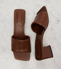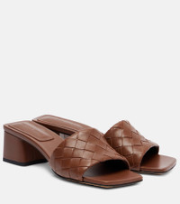 Crafted in Italy from leather, the Parco mules from Bottega Veneta showcase the Intrecciato technique on the uppers. Developed in the 1970s, this technique guarantees the longevity of its leather goods. Product Details - Upper: leather - Lining: leather - Sole: leather insole, rubber sole - Toe shape: square open toe - Made in Italy - Includes: shoe box, dust bags - Designer color name: Dark Leather - Item color: brown - Item number: P01057312 Size & Fit - True to size - European sizes - 4,5cm-2" heel (size EU 38)