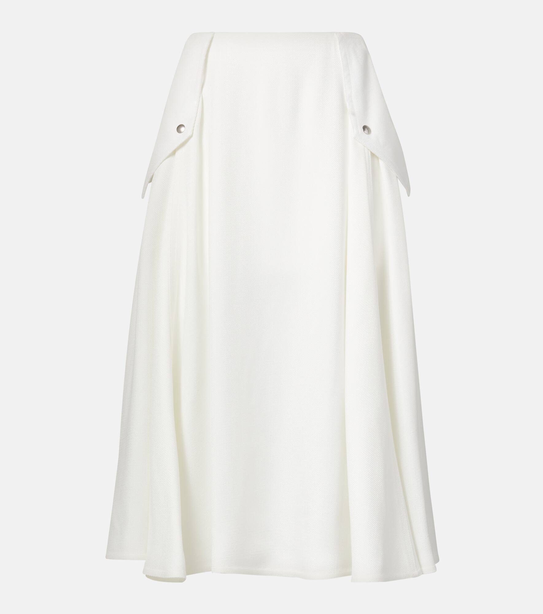 This flowy skirt from Bottega Veneta combines functionality and sophistication. The oversized flap pockets offer generous space for essentials close at hand, while the pleated, mid-length silhouette exudes timeless elegance to this piece. Product Details - Material: 87% viscose, 13% acetate - Care instructions: dry clean - Made in Italy - Designer color name: Chalk - Item color: white - Item number: P01036784