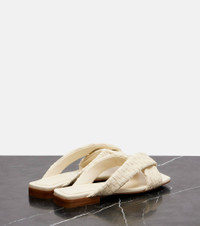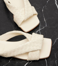 The Riva sandals from Bottega Veneta are made from woven supple leather. Developed in the 1970s, Bottega Veneta's artful Intrecciato technique guarantees the longevity of its leather goods. Product Details - Upper: leather (nappa) - Lining: leather - Sole: leather insole, leather and rubber sole - Toe shape: square open toe - Made in Italy - Includes: shoe box - Designer color name: Sea Salt - Item color: white - Item number: P01057336 Size & Fit - True to size - European sizes - 2cm-1" heel (size EU 38)