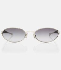 The Bottega Veneta Sardine oval sunglasses feature a sleek, sculptural design with elegant oval frames. Crafted with precision, the luxury detailing adds a refined touch, making these sunglasses a standout accessory for any wardrobe. Product Details - Frame material: metal - Frame color: silver - Lens filter category 2 - Lens color: grey - Made in Japan - Includes: case, cleaning cloth - Designer color name: Silver-Silver-Grey - Item number: P01042747 Size & Fit - Lens width: 57mm-2.25" - Bridge size: 21mm-0.85" - Earpiece length: 135mm-5.3"