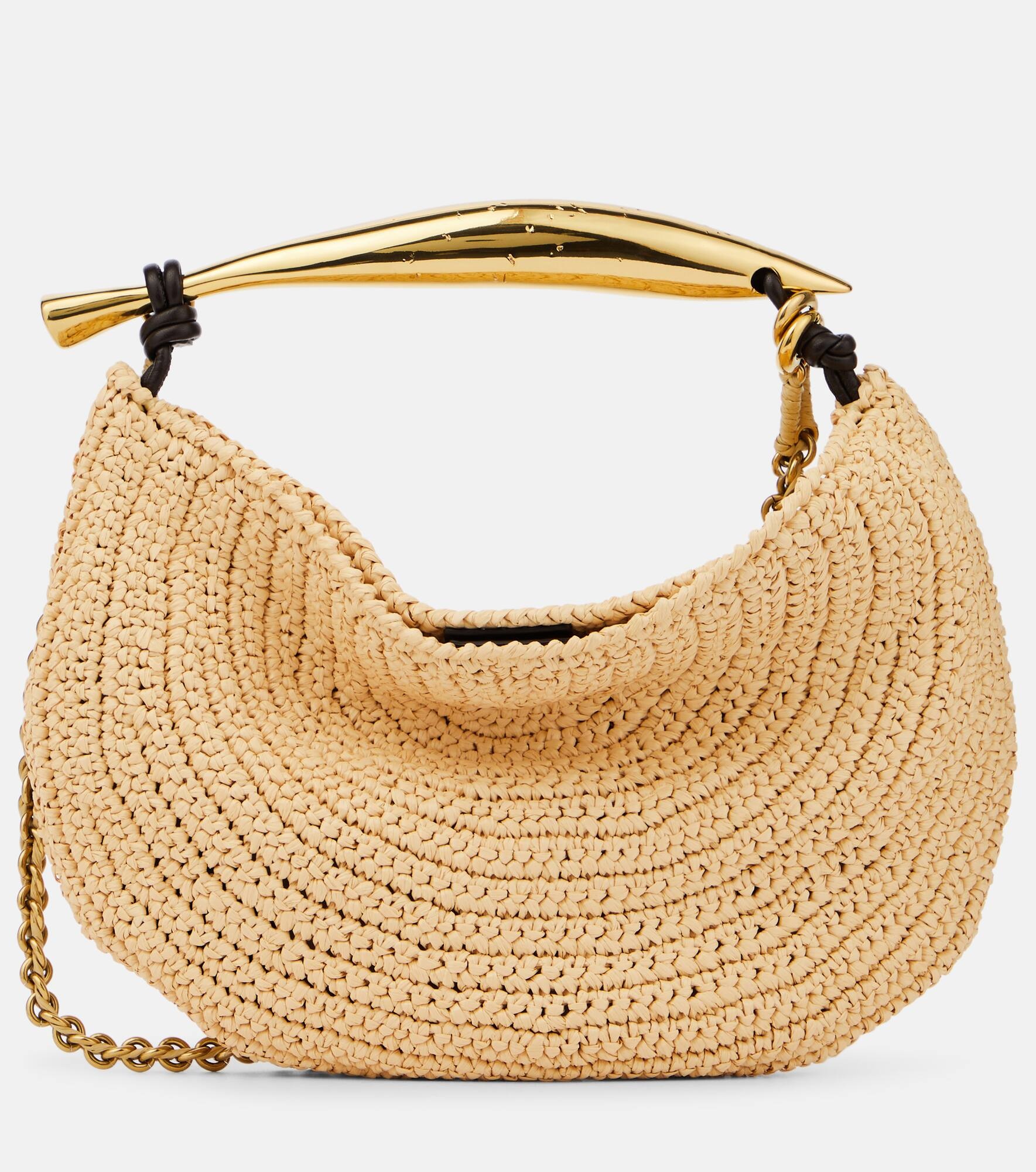 Product Details - Material: raffia - Lining: unlined - Made in Italy - Designer color name: Nat/Fond/Nat-M B - Top handle, Chain shoulder strap - Closure: magnetic fastening - Includes: dust bag - Item number: P00933666 Size & Fit - Height 20cm-8" - Width 33cm-13" - Depth 4cm-1.5" - Chain length 73cm-28.5" - Length of handle 23cm-9"