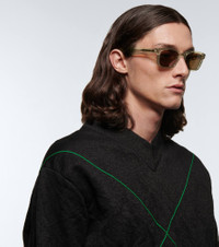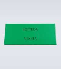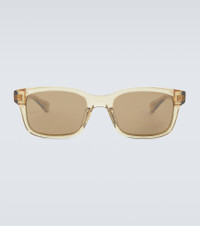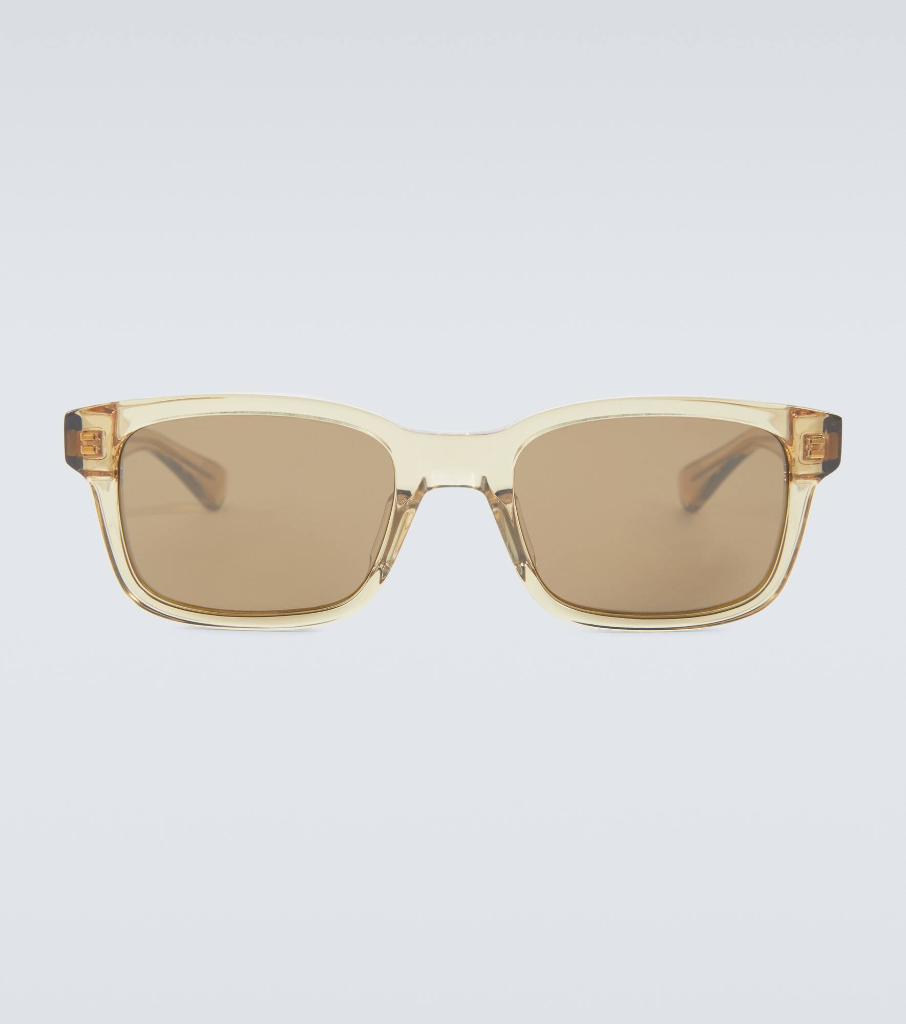 These sunglasses from Bottega Veneta are shaped with bold, thick arms that feature golden inlays. They're made from transparent beige acetate to a square silhouette. Product Details - Frame color: yellow - Frame material: acetate - Lens color: dark brown - comes with cleaning cloth - comes in a logo-embossed hard case - The color of the case may vary - Lens filter category 3 - Made in Italy - Item number: P00689878 Size & Fit - Lens width: 53mm-2.1" - Bridge size: 20mm-0.8" - Earpiece length: 145mm-5.7"