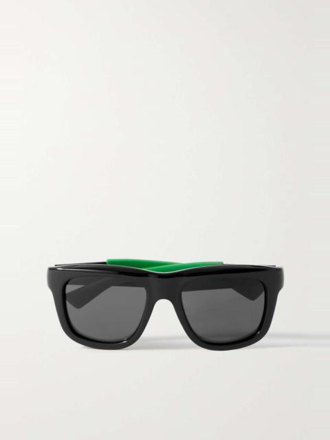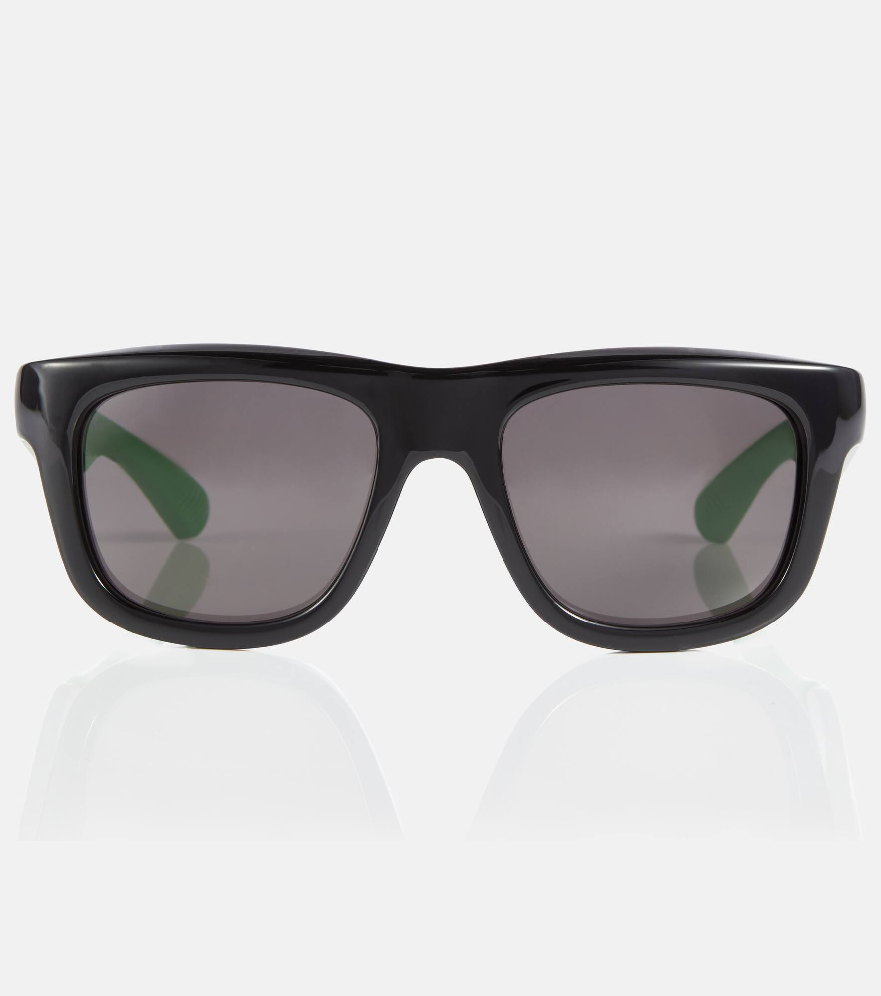 Finish your looks on an ultra-cool note with these square sunglasses from Bottega Veneta. They feature tonal lenses and black acetate frames with brand-signature Parakeet green stoppers. Product Details - Frame color: black, green - Frame material: acetate - Lens color: black - comes with cleaning cloth - comes in a logo-embossed hard case - Lens filter category 3 - Made in Japan - Item number: P00779796 Size & Fit - Lens width: 53mm-2.1" - Bridge size: 19mm-0.75" - Earpiece length: 135mm-5.3"