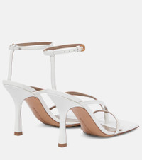 Seen here in optic white, the Stretch sandal perfectly embodies the minimalist design ethos of Daniel Lee's Bottega Veneta. Made in Italy from lamb leather, the strappy design has a mid-height stiletto heel and a sharply squared toe for a confident stride. Product Details - Lining: leather - Upper: lamb leather - Sole: leather insole, leather and rubber sole - Toe shape: square open toe - Closure: buckle-fastening ankle strap - Designer color name: Optic White - Made in Italy - Item number: P00463768 Size & Fit - True to size - Narrow at the toe - European sizes - 10,5cm-4" heel (size EU 38)