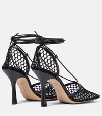 Bottega Veneta takes a unique approach to fabrication for a truly modern approach to luxury, as exemplified by the Stretch mesh pumps. Trimmed with supple leather, the black design has wrap-tie ankle fastenings, tapered 90mm heels and squared toes, resulting in a directional look. Product Details - Lining: leather, fabric - Comes with a box - Upper: lamb leather, fabric - Sole: leather insole, leather and rubber sole - Closure: lace-up - Made in Italy - Designer color name: Black - Comes with dust bag - Toe shape: square toe - Item number: P00531776 Size & Fit - True to size - European sizes - 9cm-3.5" heel (size EU 38)