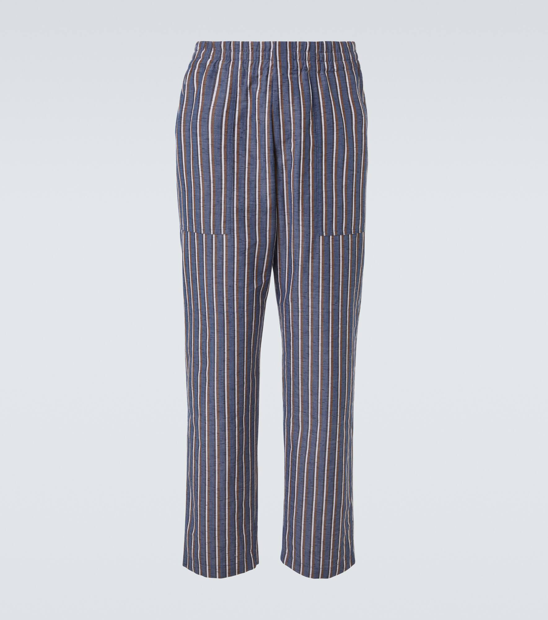 Crafted from a cotton blend, these pants from Bottega Veneta are cut to a wide-leg silhouette. This design features an elasticated waist. Product Details - Material: 84% cotton, 12% linen, 4% polyamide - Care instructions: dry clean - Made in Italy - Designer color name: Blue/Khaki/Black - Item color: blue, multicolor - Trim: 100% cotton - Contains non-textile parts of animal origin - Closure: zip, hook, and button fastening - Pockets: slant pocket, back pocket - Elasticated waistband - Item number: P01059695 Size & Fit - True to size - Elasticated waist - Non-stretchy fabric - Wide-leg - Height of model is 189cm-74.5" and wears a size 50