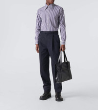 Product Details - Material: 100% cotton - Care instructions: dry clean - Made in Italy - Designer color name: Blue/White - Material II: 100% cotton - Contains non-textile parts of animal origin - Closure: buttoned placket - Hem: rounded - Cuff: two buttons - Collar: classic (Straight point) - Item number: P00935077 Size & Fit - True to size - Without pleats in the back - Classic fit - Non-stretchy fabric - Falls below the hip - The model in the picture is 185cm-6'1" and wearing a size IT 48